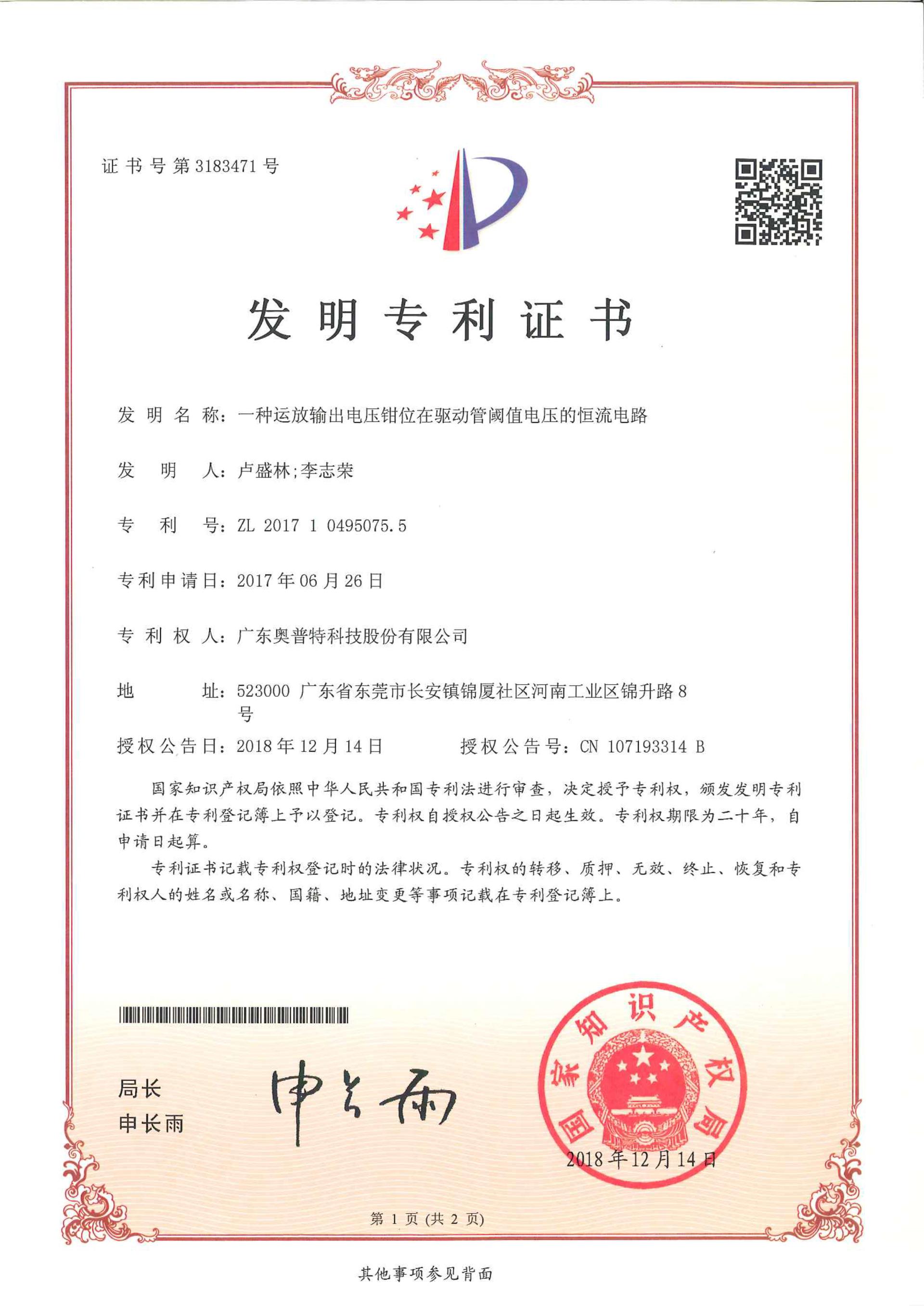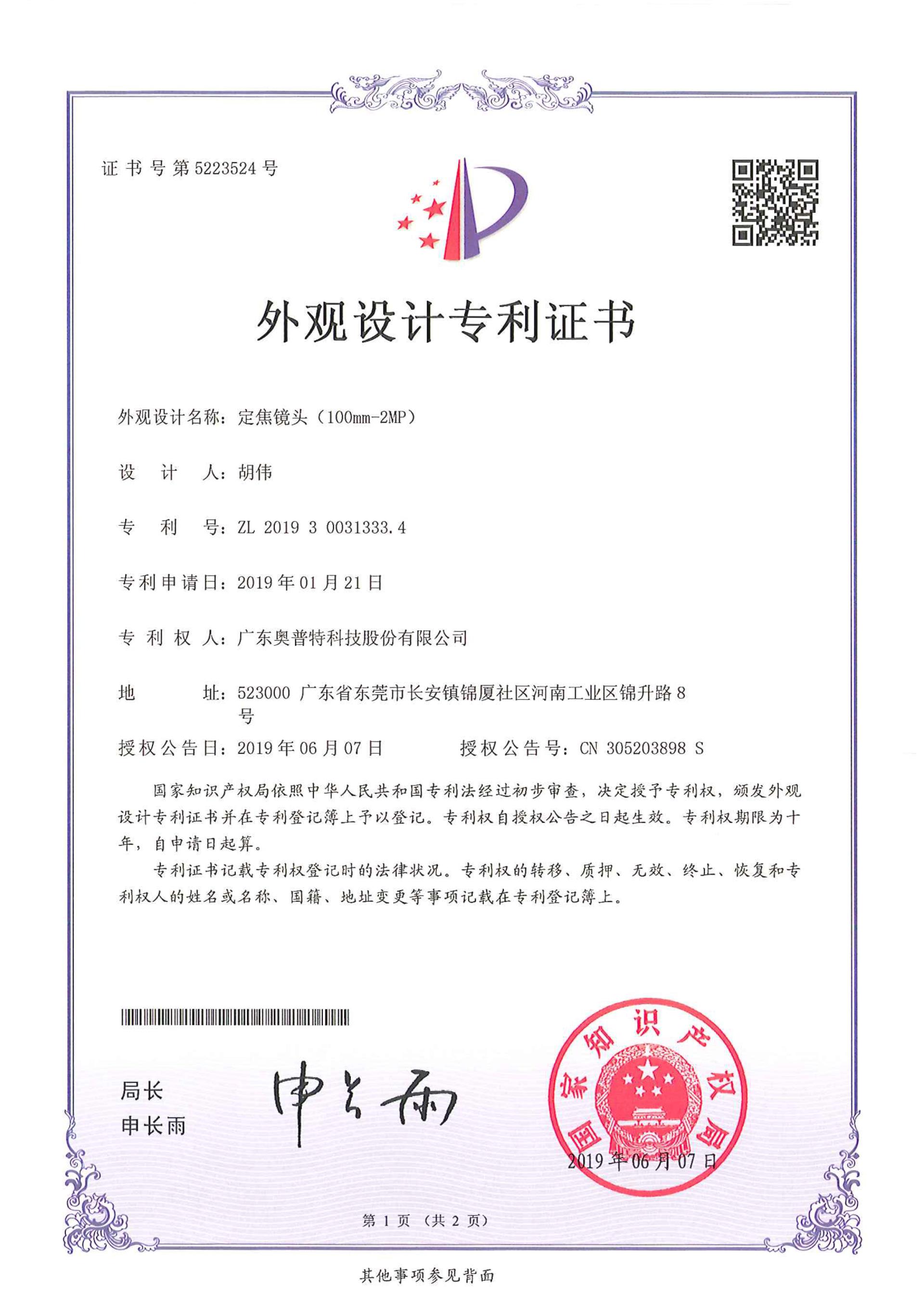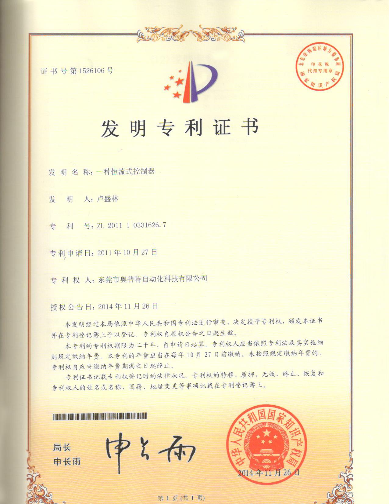 專利證書
